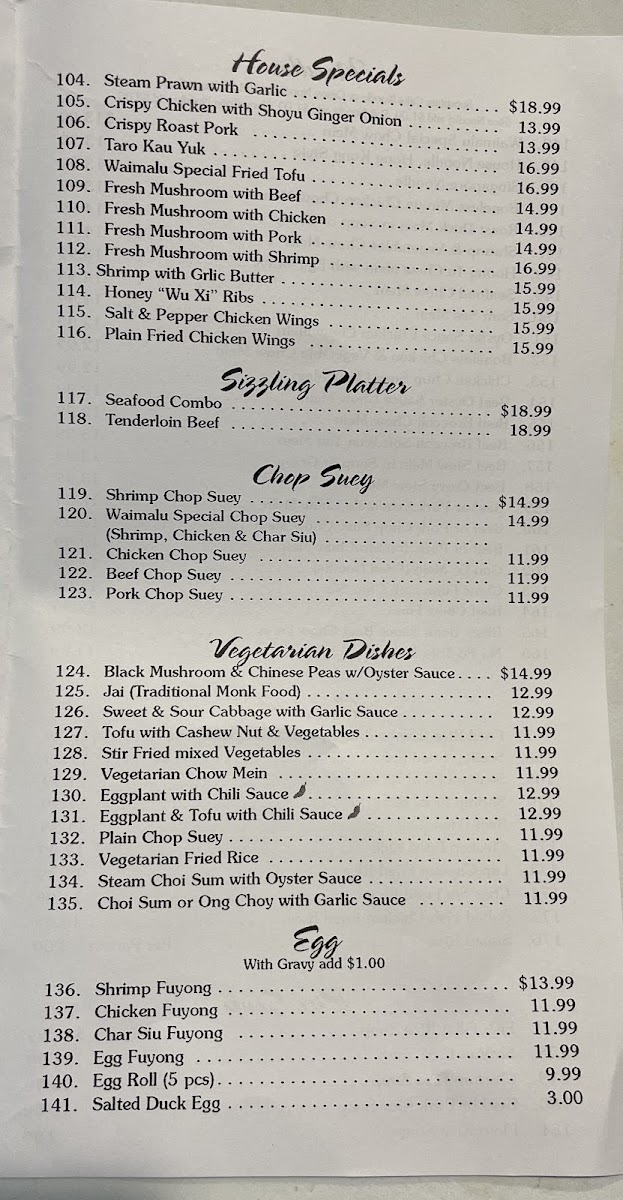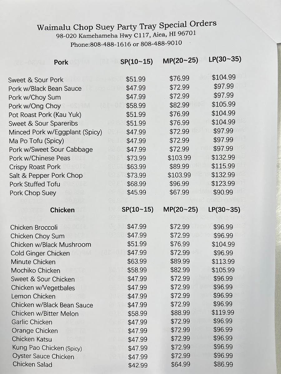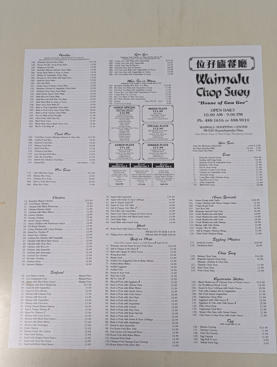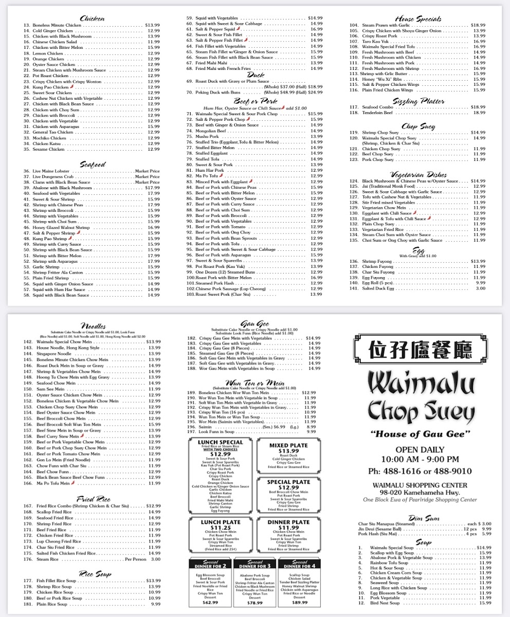 Step into the local treasure that is Waimalu Chop Suey, a beloved Chinese restaurant nestled at 98-020 Kamehameha Hwy in Aiea, Hawaii. Known for its rich and authentic flavors, Waimalu Chop Suey serves up a delightful array of dishes that transport your taste buds straight to the heart of traditional Chinese cuisine.